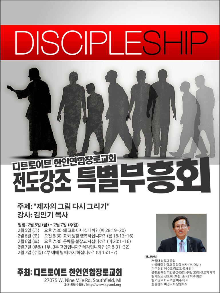 주제는 “제자의 그림 다시 그리기”이며 강사는 김인기 목사입니다.
